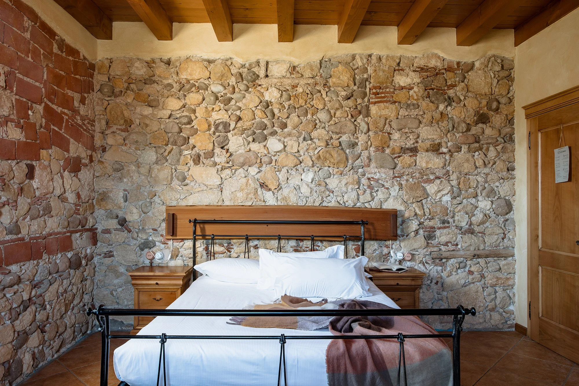 Stone walls, wooden furniture and wrought-iron beds are the protagonists of this room, a place suitable for families with a child or groups of friends who want to treat themselves to a Valpolicella getaway.